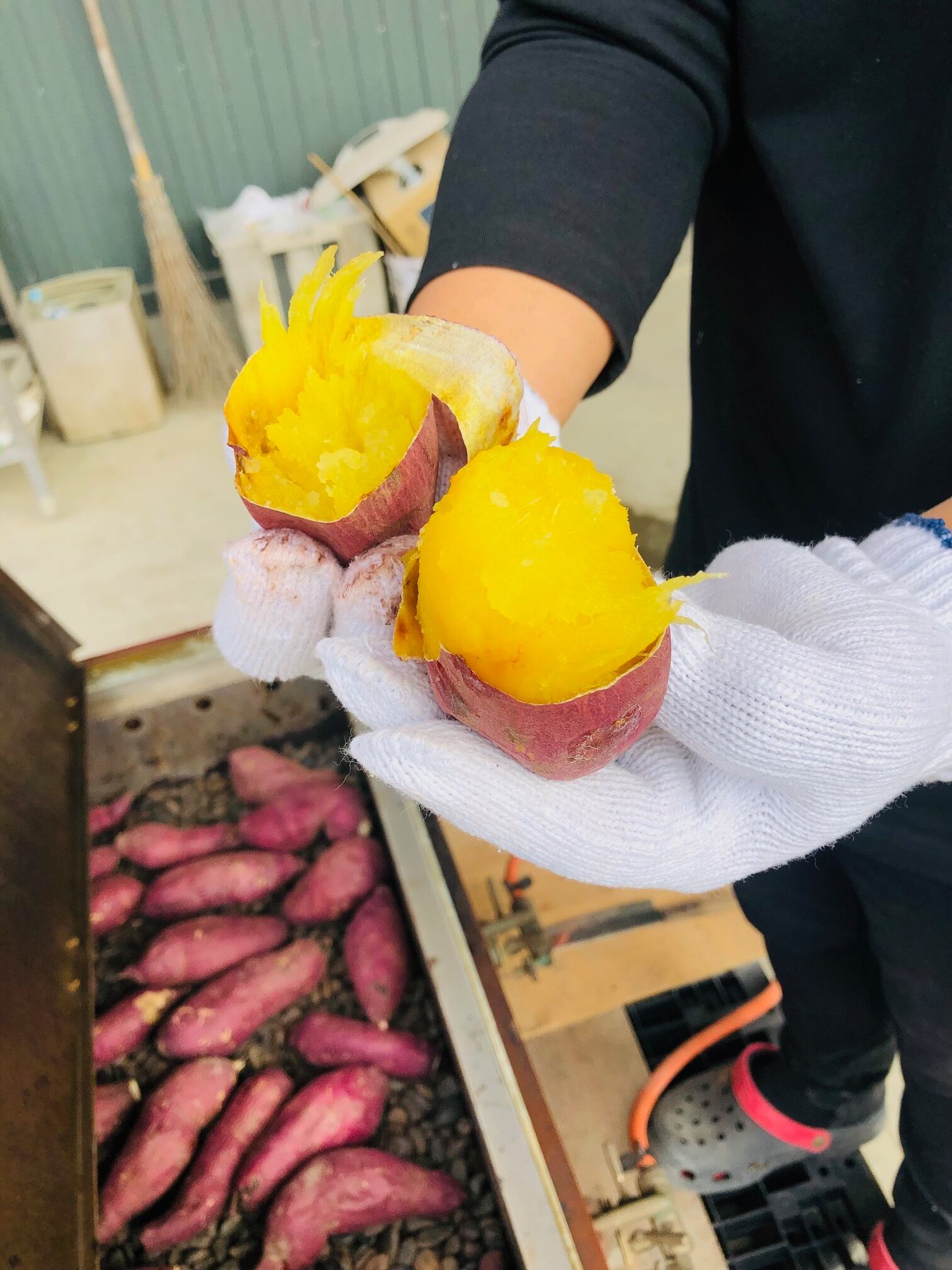 自社栽培の国産の紅はるかを使用し、ひとつひとつ丁寧に手作業で干し上げています。